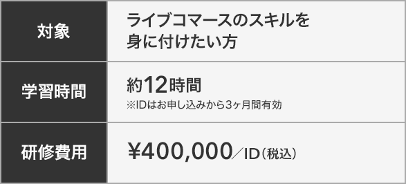 ライブコマースの基礎知識を学び、視聴者を引きつける配信スキルを習得! 商品の魅力を最大限に伝える方法を身につけることで、売上アップと配信の効率化を実現できます。ライブ配信の力で、あなたのECビジネスをさらに強化しましょう。